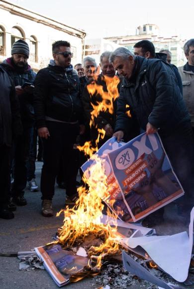 Αγρότες εισέβαλαν στα γραφεία του ΣΥΡΙΖΑ -Πέταξαν αυγά και έκαψαν τις σημαίες του κόμματος
