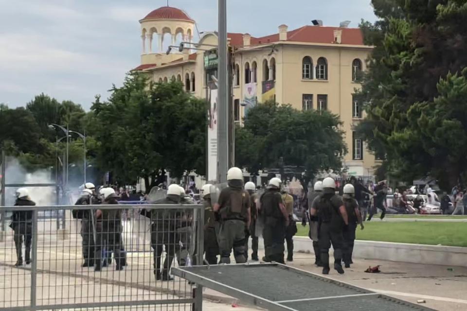 Ένταση και επεισόδια είναι σε εξέλιξη αυτή την ώρα στη νότια πύλη της Διεθνούς Εκθέσεως Θεσσαλονίκης μεταξύ διαδηλωτών...