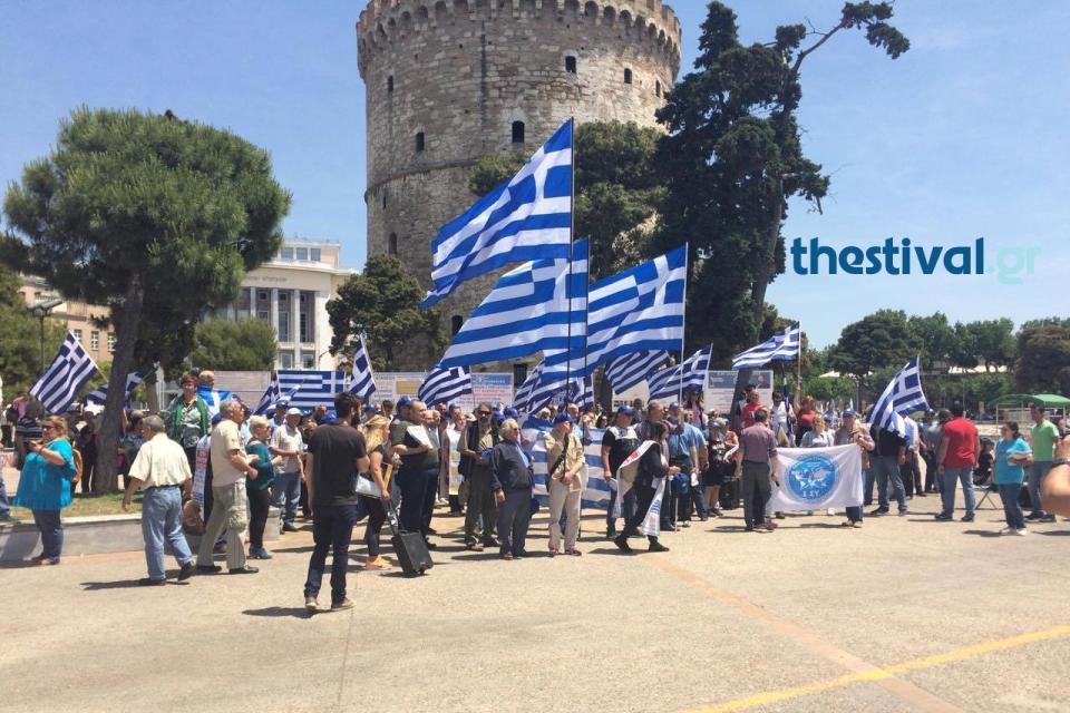 Με ελληνικές σημαίες τα χέρια, πλακάτ με συνθήματα της Ελλήνων Συνέλευσης, αλλά και ηχογραφημένα μηνύματα κατά... του