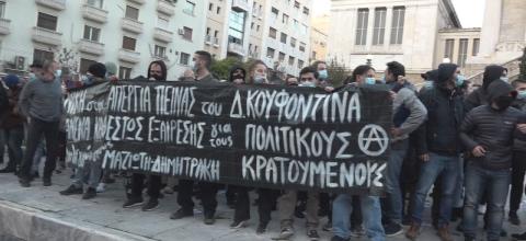 Σάββατο, 20 Φεβρουαρίου, 2021Πανό και τρικάκια για τον Κουφοντίνα έξω από τα γραφεία της ΝΔ στην Πειραιώς - Πολλές προσαγωγές από την αστυνομία