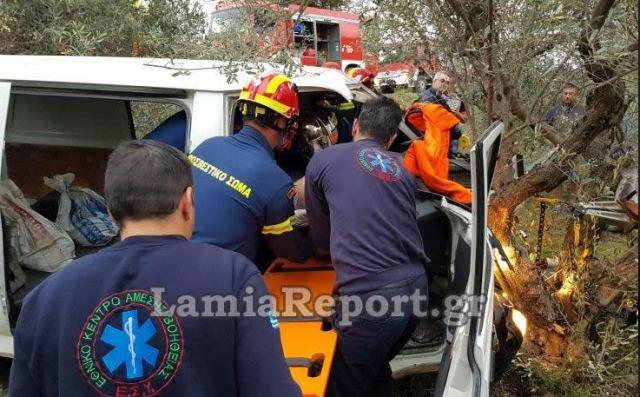 Δύσκολη επιχείρηση απεγκλωβισμού οδηγού στο δρόμο Λαμίας - Λυγαριάς.