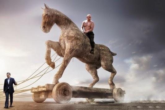 Το συγκλονιστικό εξώφυλλο των Sunday Times εμφανίζει τον Αλέξη Τσίπρα να τραβά έναν δούρειο ίππο, πάνω στον οποίο κάθεται