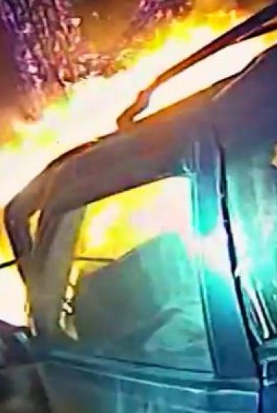 Παρασκευή, 2 Σεπτεμβρίου, 2016Η στιγμή που αστυνομικός απεγκλωβίζει έναν πολίτη από φλεγόμενο αυτοκίνητο