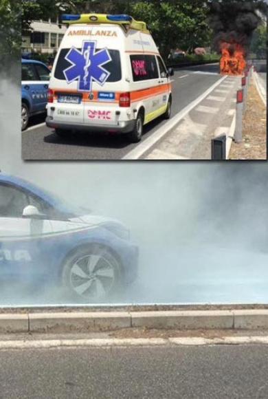 Πέμπτη, 14 Ιουλίου, 2016Περιπολικό BMW I3 έπιασε φωτιά τη Ρώμη