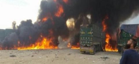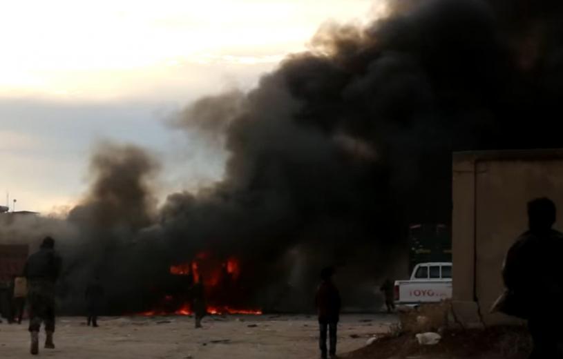 Το πρώτο βίντεο αμέσως μετά την από αέρος επίθεση που δέχθηκαν ιδιωτικής χρήσης φορτηγά στο έδαφος της Συρίας